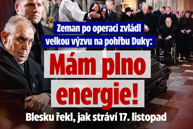 - Zeman prozradil Blesku plán na 17. listopad: Budu cvičit chůzi! Na pohřbu Duky zvládl velkou výzvu