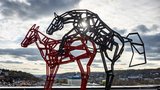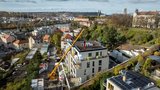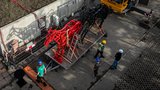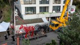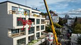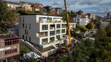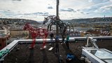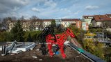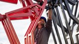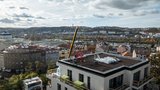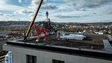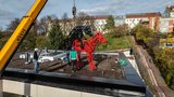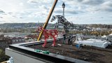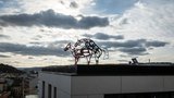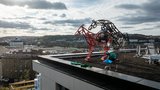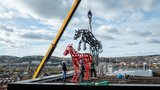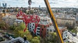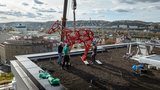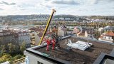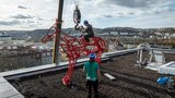 Šemík Happy End při instalaci na střechu domu Villa Gallery v Podolí, 4. listopadu 2025.