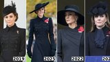 Princezna Catherine se i letos oblékla s důstojností odpovídající národnímu smutku, tedy do černých kostýmků s kloboučkem a výraznými vlčími máky na klopě. Znovu tím potvrdila, že na rozdíl od mnoha jiných celebrit (i mnohých ženských členek britské královské rodiny) se nebojí opakovat oblečení. Letos totiž vynesla dva kabáty, které už veřejnost zná z minulých let.