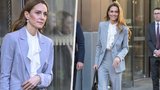 K řečnickému pultu zamířila v šedém kostýmku a bílé volánkové halence Cascade. Celý outfit doplnila elegantními náušnicemi z kolekce Empress od Mappin & Webb v hodnotě 3 750 liber ( přibližně 102 862 Kč) a černou koženou taškou Smythson East West Tote. Na rukou se jí leskly hned čtyři prstýnky, mezi nimiž nechyběl ani ikonický zásnubní prsten po princezně Dianě (†36).