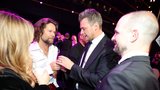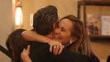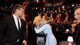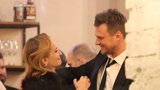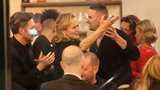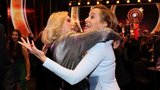 Nejdřív skočila Vojtovi kolem krku a došlo na vzájemné objetí, kdy ji zpěvák letmo líbnul do vlasů. Není divu, že se zpěvačka tetelila blahem, Vojta je velký fešák a navíc sympaťák.