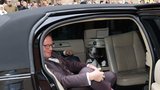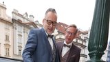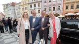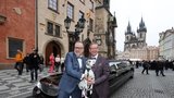 V půl dvanácté přistála před naší nejslavnější radnicí devítimetrová luxusní limuzína. Zamilovaný pár doprovázely jako svědkyně rodinné kamarádky herečka Jitka Ježková (47), svědkyně Michala, a bývalá televizní hlasatelka Marie Retková (69), která svědčila Alešovi.