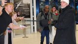 Na Terminál 3, který je určený pro VIP lety, přijela v koloně čtyř černých dodávek před 19. hodinou. Na podpis v tu chvíli uvnitř terminálu čekalo asi 10 jejích fanoušků. „Přátelé, Julia se podepisovat nebude, není to možné,“ pronesl k nim její přísný bodyguard, když okukoval terén. Následně Julii v kulichu a zimní bundě vyzvedl. Pomohl jí z auta, nabídl jí rámě a prošel s ní kolem jejích příznivců.
