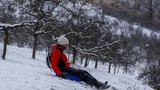 Zimní radovánky přilákaly návštěvníky také na Petřín, kde děti bobovaly a sáňkovaly na svazích. Sníh využili lidé ke sportu i v dalších částech metropole, například v parku na Pankráci byla vyježděná stopa pro běžkaře.