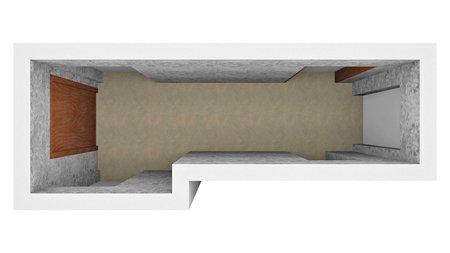 Úzká místnost za vstupem do bytu. Z téhle předsíně se navíc vchází hned do pěti místností a na chodbu. Do koupelny se záchodem, šatny a jídelny vejdete dveřmi, kuchyň a obývák dveře nemají, aby se ušetřilo místo.