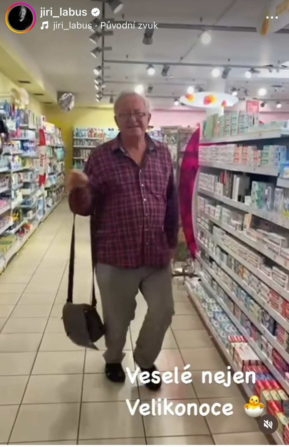 Jiří Lábus své fanoušky potěšil tanečkem v drogerii. „Veselé nejen Velikonoce,“ přeje herec a komik.