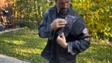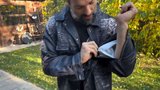 „Jsem rád, že jsem nenaletěl, ta kvalita je naprosto špičková. Je to úplně stejná bunda jako z toho obrázku, je to pravá džínovina, tady ty pyramidky (kovové prvky, které jsou na košili jen natištěné, pozn. red.)… au, teď jsem se o to úplně píchnul… ta lebka je jak živá,“ komentoval ironicky Noid.
