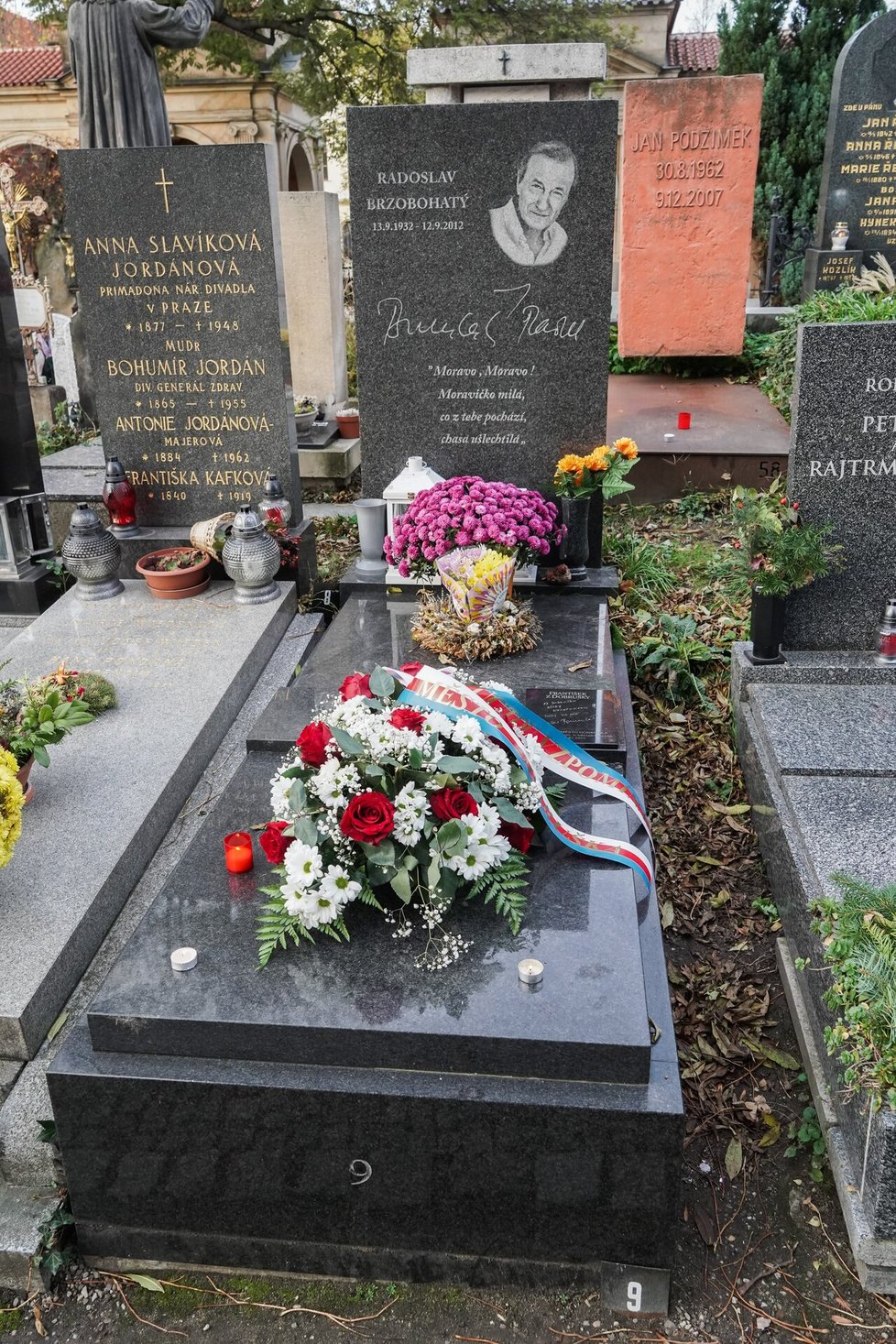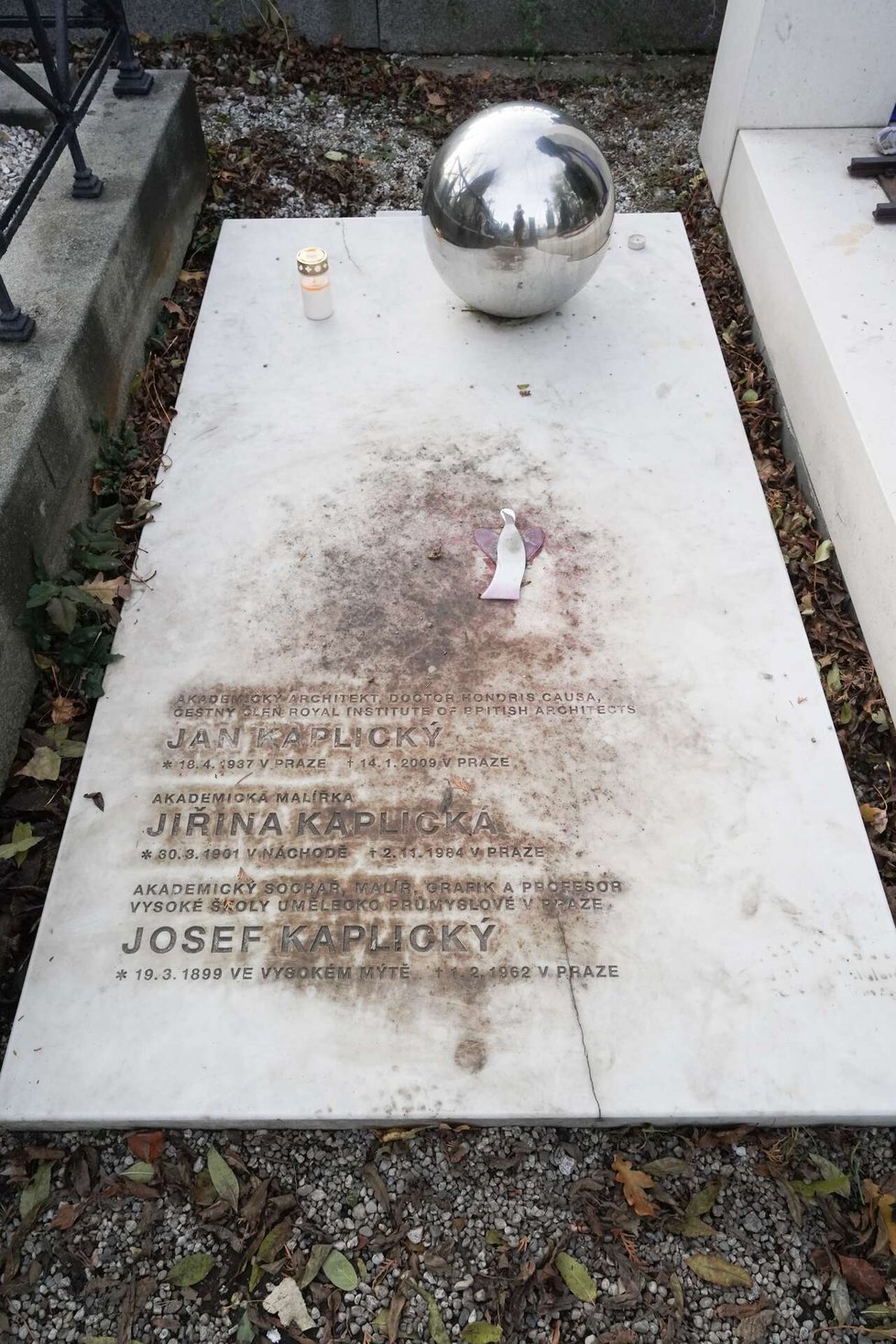 Bílý kámen náhrobku se zdá však poněkud nepraktický. Jsou na něm vidět stopy předcházející výzdoby a působí poněkud zanedbaně. Je možné, že dušičkové květiny na něj vdova Eliška, která 28. října z rukou prezidenta republiky převzala za svého zesnulého chotě státní vyznamenání, teprve přinese.