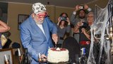 Zatímco někteří hosté si dali na převlecích opravdu záležet, oslavenec zvolil jednodušší pojetí – dorazil jako elegán v modrém saku a se strašidelnou maskou na obličeji. V podobné masce se objevila i jeho partnerka Lucie, kterou si před několika měsíci potají vzal za manželku.