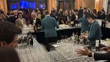 Okolo desáté hodiny večerní se sálem rozezněly zvuky věhlasných italských songů jako Bella Ciao a Italové se pozvolna začali vlnit mezi kulatými stoly. Se slovy »O partigiano« na rtech už pak poskakovali s rukama nahoře. Italové prostě umějí žít…