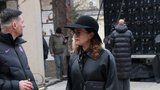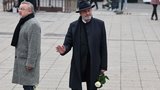 Do krematoria se vydává průvod kolegů Patrika Hezuckého. Přicházejí pěšky od redakce, která je nedaleko. V čele kráčí Leoš Mareš s manželkou Monikou.