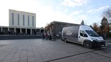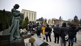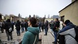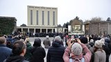 Smuteční hosté, kteří se chtějí naposledy rozloučit s Patrikem Hezuckým, už se scházejí před Velkou síní.