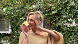 Na další fotce, kterou vyzáblá kráska zveřejnila, už její dekolt jen skoro zakrývá něco mezi topem a podprsenkou.
