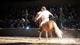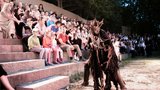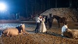 V akčních scénách neschází divácky oblíbená akrobacie od jízdy hlavou dolů až po cval ve stoje na dvou koních. V tom Bednářovi sekunduje jeho partnerka Natálie Nováková.