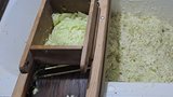 Zpracovat tolik hlávek na kvašení není žádná legrace. Za struhadlem se činil syn Radek (56), zatímco maminka Danuše (76) připravovala ingredience. „Vinné listy přijdou dolů do soudku a po bocích, ať to má styl. A samozřejmě kmín, sůl, česnek, kopr a cibule. Bez toho by to nebylo ono,“ říká paní Danuše.