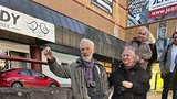 Před obchodním domem Prior, kde už desítky let mohutná socha stojí, odhalil sochař Gebauer novou bronzovou ceduli. Ta definitivně potvrzuje jeho autorství. Odtajnil i historii vzniku Sago baby. Díla, které se rodilo v dramatické době přelomu 80. a 90. let.
