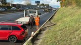 Řidič osobního auta dostal podle policie na mokré vozovce smyk, narazil do svodidel a poté havarovala další čtyři vozidla za ním. Dálnice byla ve směru na Prahu téměř dvě hodiny zcela neprůjezdná.